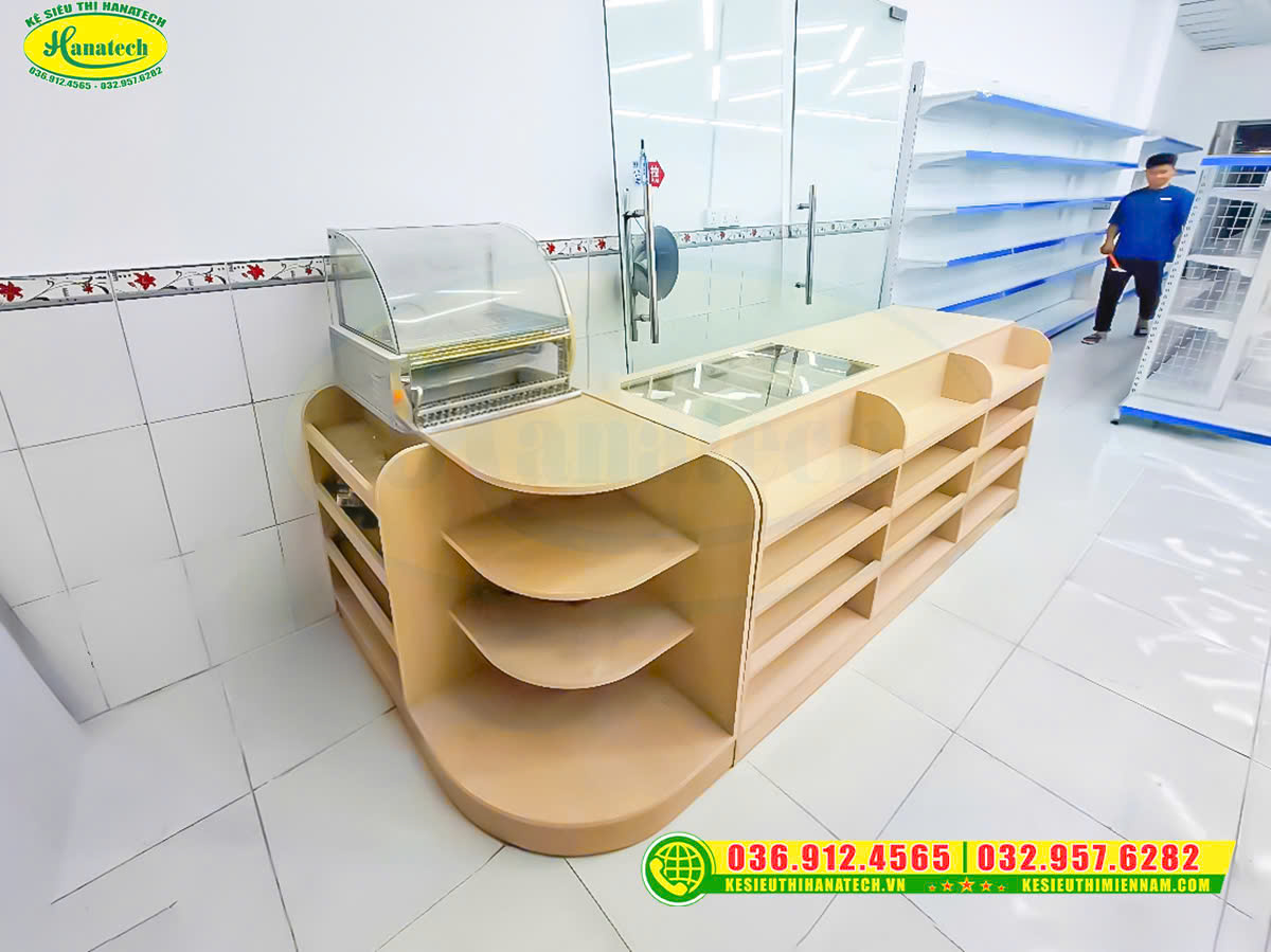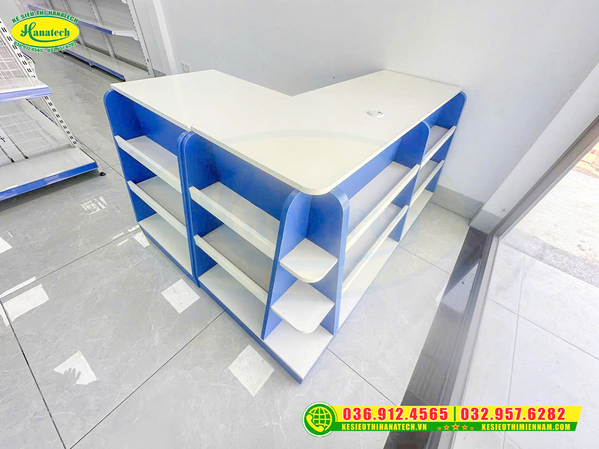 Kiểu dáng gọn gàng, có ngăn chứa tiện lợi, giúp chủ shop dễ sắp xếp và vận hành. Đồng thời, có thể tận dụng khu vực này để trưng bày thêm sản phẩm nhỏ, tăng doanh thu hiệu quả.
