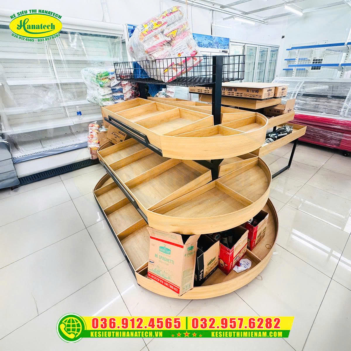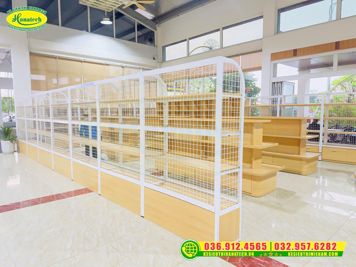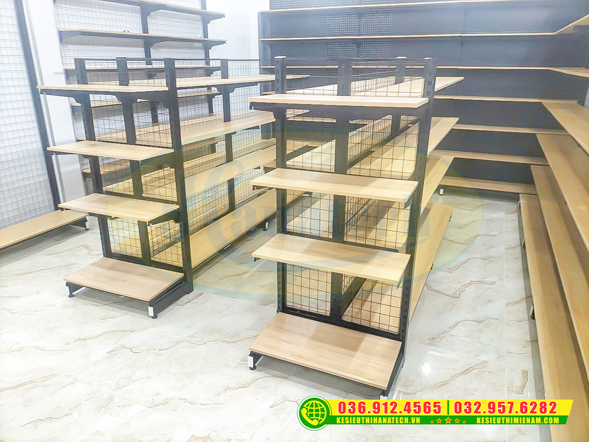 Mẫu kệ siêu thị gỗ trưng bày tại Hà Nội