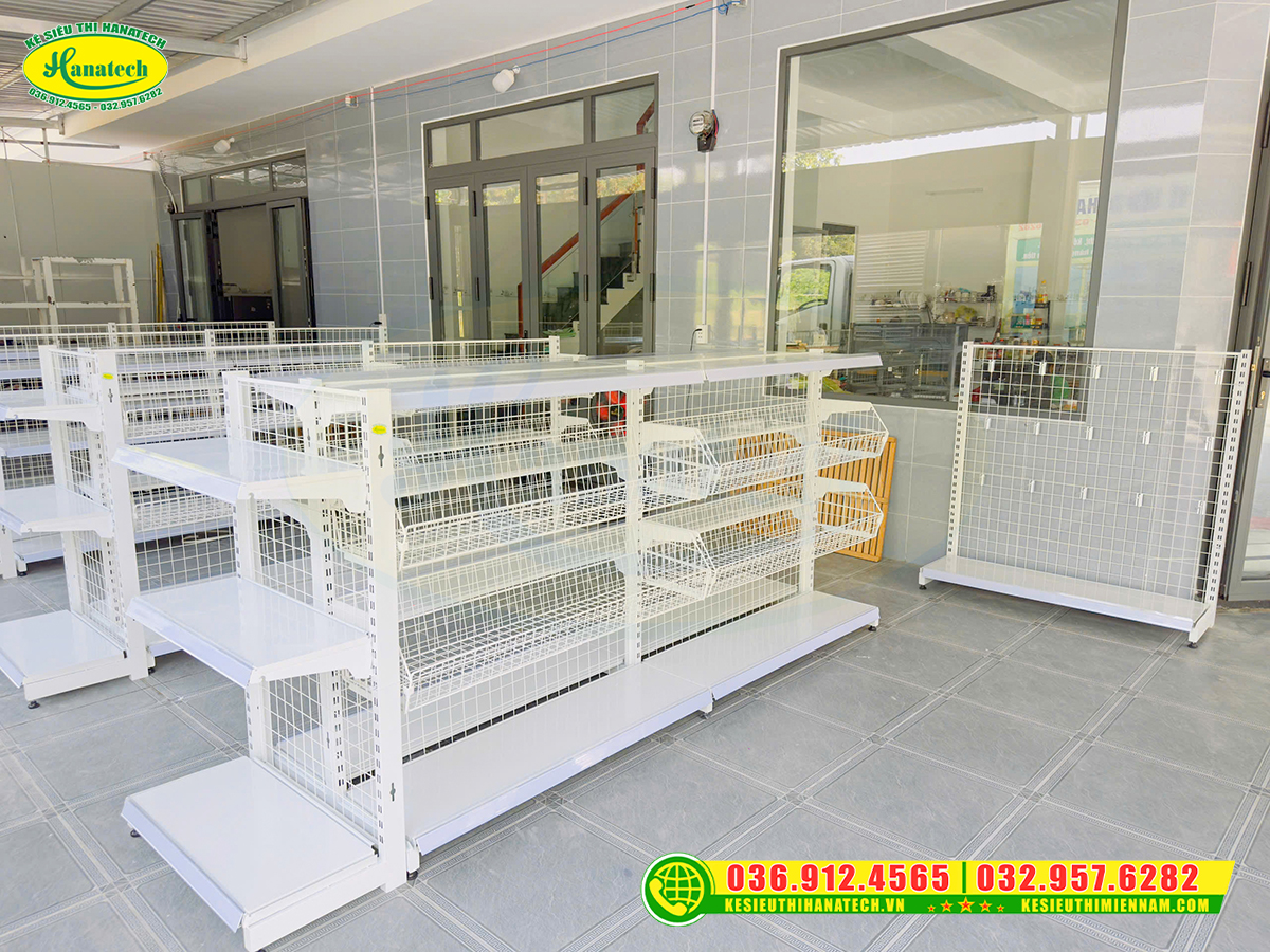 Kệ siêu thị lưng lưới trắng giá rẻ