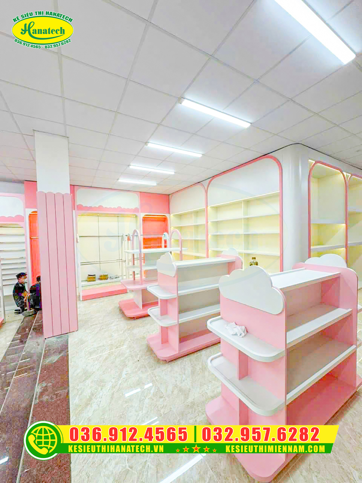 Thi công lắp đặt tủ kệ gỗ MDF cho shop mẹ và bé
